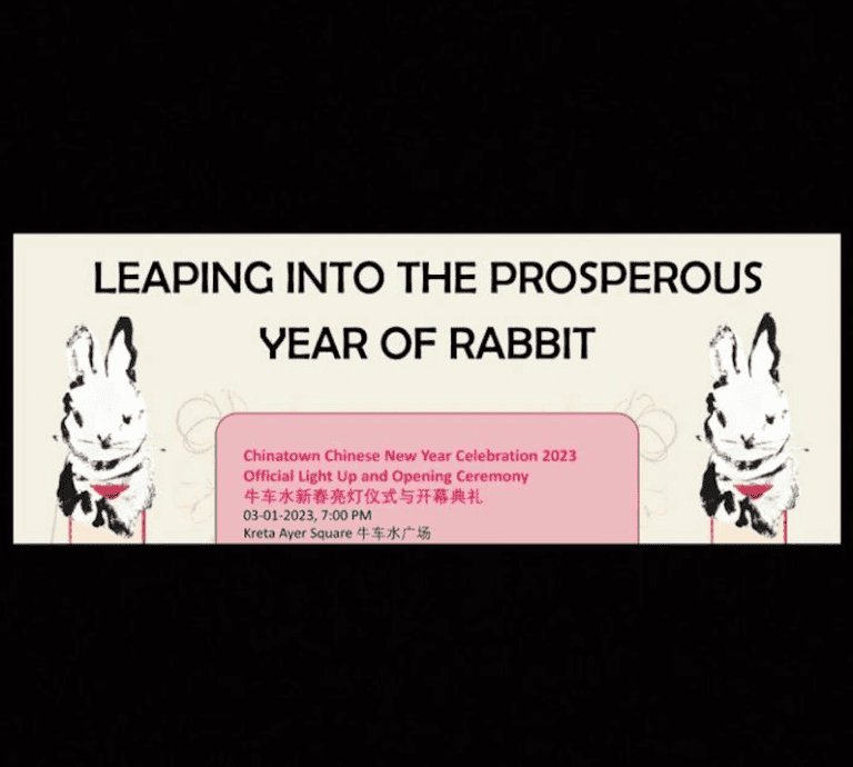 The Chinatown Festival Committee, supported by Kreta Ayer – Kim Seng Citizens’ Consultative Committee kicks off the long-awaited Chinatown Chinese New Year Celebration 2023. The first full scale physical celebration in two years, highlights of the festival include its iconic street light-up and festivities that usher in the Year of the Rabbit under the theme ‘Leaping into the Prosperous Year of Rabbit (新春福兔迎新岁 富贵盈门庆丰年)’, signifying a year of rebirth, resurrection and vitality.