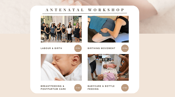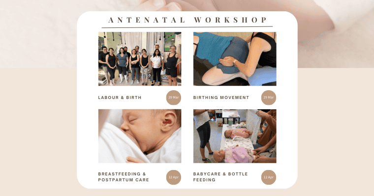 Facilitated by our Birth and Postpartum Doula, our monthly antenatal classes provide a full hands-on experience for soon-to-be parents. Covering both prenatal and postnatal topics such as birth options, breathing exercises, birth preparation movements, postnatal care, breastfeeding, and babycare, you can opt to join individual antenatal modules, or attend all 4 as a course package.