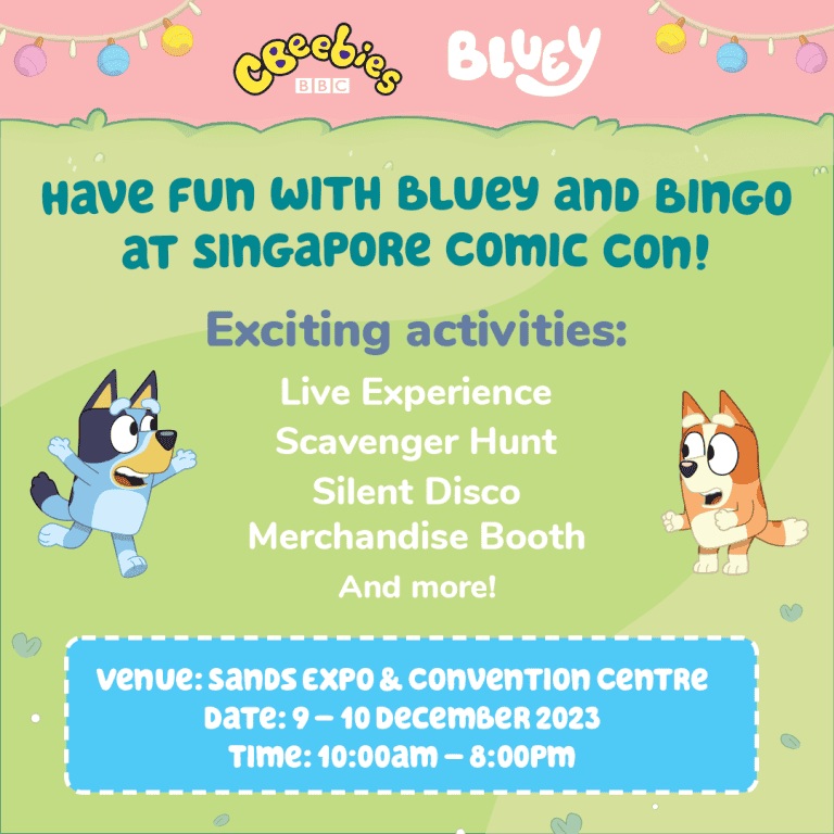 In the spirit of finding fun in everyday family life, there will be an all-day Bluey-themed Scavenger Hunt for families to participate in parent-child pairs. Find the hidden clues hidden across the entire SGCC hall and complete all the checkpoints to bring home a special prize pack.