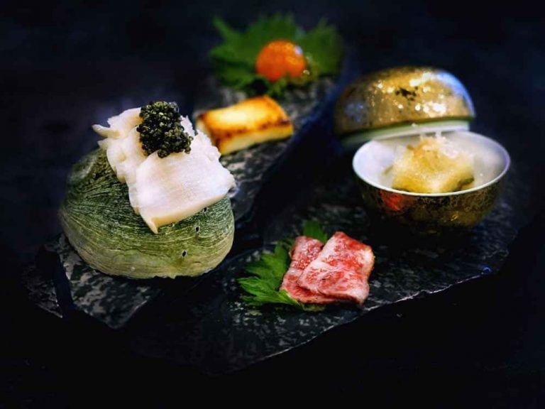 The meal starts with Chef’s premium selection of the freshest seafood in the Fat Cow Zensai Moriawase (Salmon, Tuna, Seabream, Amberjack, Sweet Shrimp). Enjoy quality conversations as you savour Fat Cow’s famed Awabi Wagyu Donburi (Abalone, Uni, Ikura, Ebi Tempura, Premium Wagyu Striploin*). Refresh your palate by rounding up the meal with a sweet Homemade Japanese Marugoto Peach Sorbet.