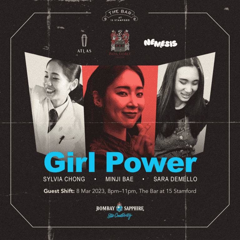 Raise a toast to female bartenders this International Women’s Day. Taking over from the three mixologists at The Bar at 15 Stamford are Sylvia Chong from Atlas, Minji Bae from Papa Doble (previously known as The Old Man), and Sara Demello from Nemesis. On the menu for the evening are six delicious cocktails featuring BOMBAY SAPPHIRE gin. Bartender Sylvia, from the award-winning Atlas bar, is known for her precise techniques and finesse; Min Ji from Papa Doble, No. 61 on Asia’s 50 Best Bar 2022, pushes the envelope with her progressive cocktails; and Sara, from Nemesis, is an up-and-coming mixologist with a penchant for creative flavours.