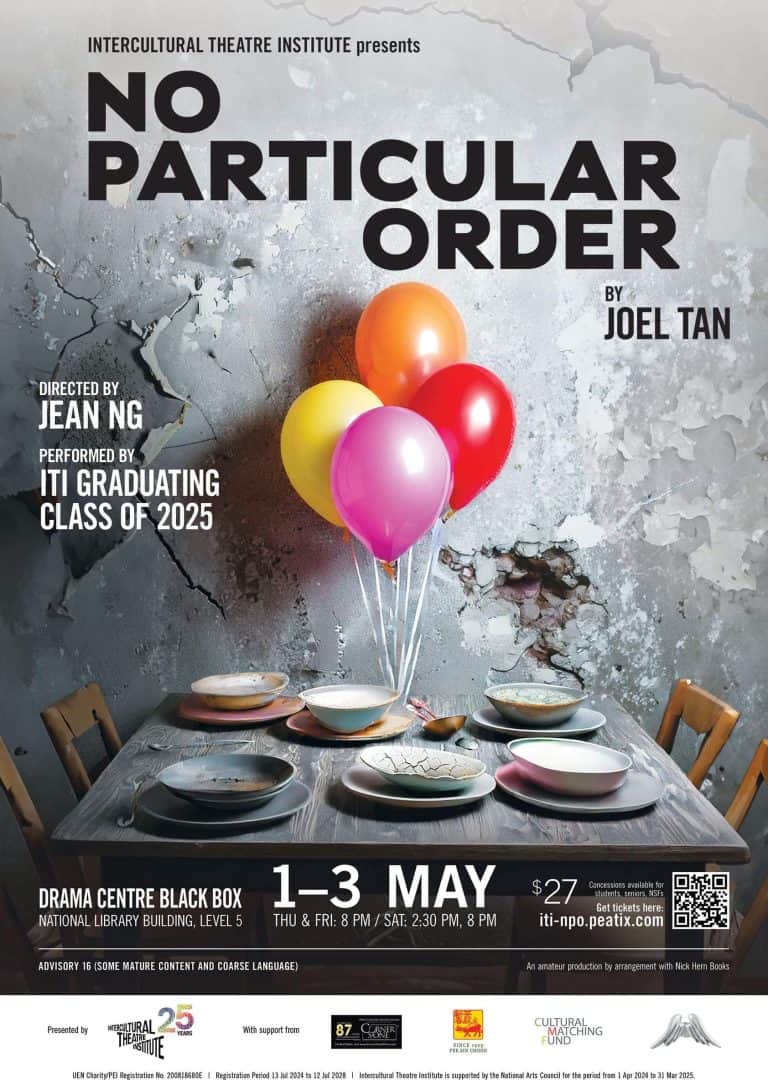 From 1 to 3 May 2025, ITI presents No Particular Order, written by Joel Tan, directed by theatre practitioner Jean Ng, and performed by the ITI graduating class of 2025: Surendran Ananthan, Kunal Dara, Aditi Venkateshwaran, and Sanat Mehta, hailing from Singapore and India.