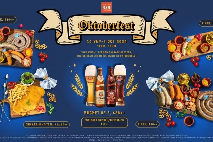 Celebrate OktoberFest from 16th September to 3rd October 2024, 12pm-10pm at TASTE Restaurant on ibis Singapore on Bencoolen! Dive into delicious sausage platters, perfect for any group size: