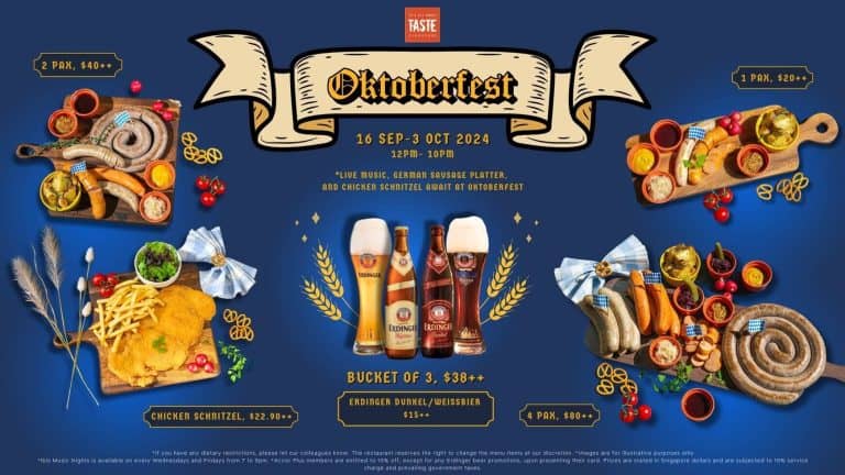 Celebrate OktoberFest from 16th September to 3rd October 2024, 12pm-10pm at TASTE Restaurant on ibis Singapore on Bencoolen! Dive into delicious sausage platters, perfect for any group size: