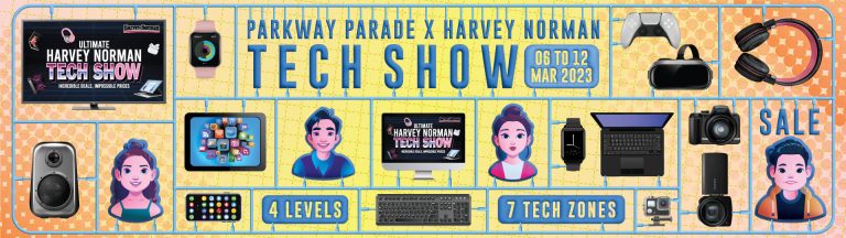 In collaboration with Parkway Parade, Harvey Norman will be taking over 4 indoor levels of Parkway Parade for the first ever tech show of such scale taking place in a shopping mall from 6 to 12 March.
