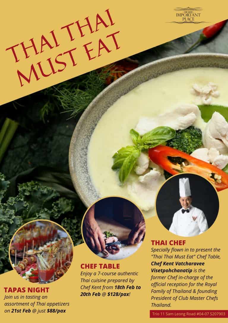 For bookings, head to https://thaithaimusteat1802.peatix.com/ or email us at Jeff.Soh@upperroomconcepts.com.sg