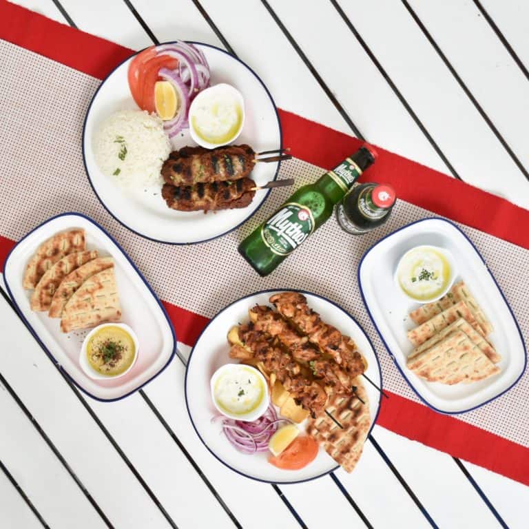 Available for dine-in only, the meal is served with complimentary cooling Mythos beers for an afternoon respite.