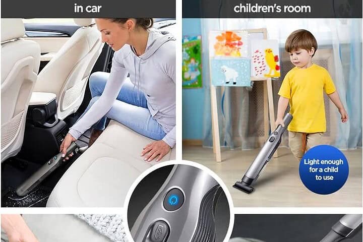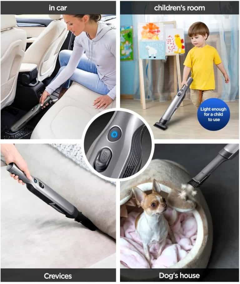 This cord-free vacuum is not just about convenience—it delivers impressive suction power, driven by its high-speed, brushless motor. It’s convenient for small spaces like cars or tight corners at home. Pet owners will appreciate how effectively it picks up hair and handles tough surfaces like carpets and upholstery.